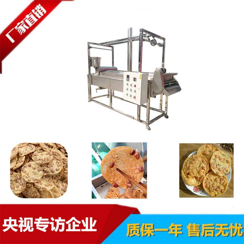 2.我公司经过不断的测试和改进,制成了一种自动注浆自动撒豆的花生饼机,并且注浆量和撒豆的数量可以调节、产品厚薄也可以调节。全程实行自动控温,设定好花生饼所需要的油炸温度后,设备会开启加热状态,达到设定温度后会自动停止加热,保证油温的恒定性。